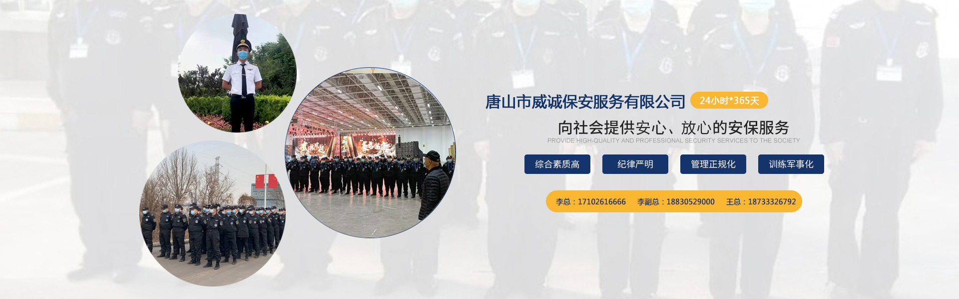 唐山市威誠(chéng)保安服務(wù)有限公司自成立以來(lái)以“嚴(yán)防死守、忠于業(yè)主”為服務(wù)原則,以“客戶滿意、 合作共贏”為根本目標(biāo)。以科學(xué)的管理、多方位多層次的服務(wù),建立了首問(wèn)責(zé)任制,完善了走訪、回訪 、滿意度調(diào)查、末位淘汰的預(yù)警管理,不斷提高服務(wù)質(zhì)量,提高業(yè)主滿意度,提高企業(yè)形象。秉承“誠(chéng) 實(shí)守信,紀(jì)律嚴(yán)明,團(tuán)結(jié)協(xié)作,致精致誠(chéng)”的服務(wù)理念,為客戶提供高品質(zhì)、多方位、專業(yè)化的保安服務(wù)。 本公司制定了嚴(yán)謹(jǐn)?shù)亩ㄏ蛘猩徢芭嘤?xùn)、考核錄用、崗中培訓(xùn)、持...